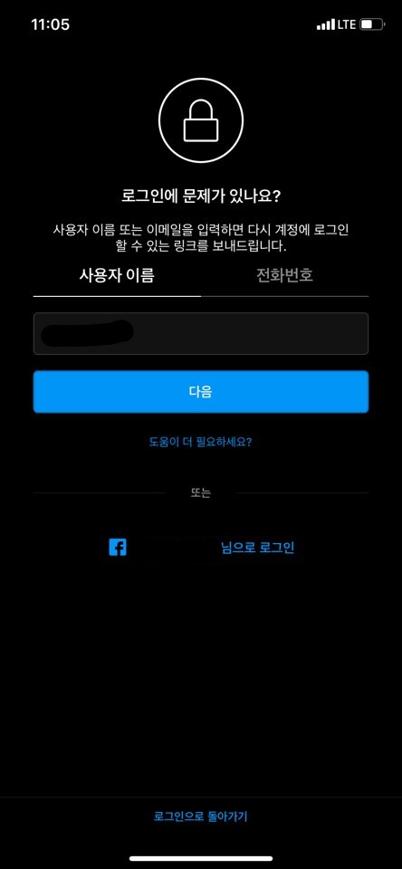 아무리 많은 비밀번호를 쳐봐도 나오지 않는 인스타 계정.. 답답하지만 로그인은 안되고..
