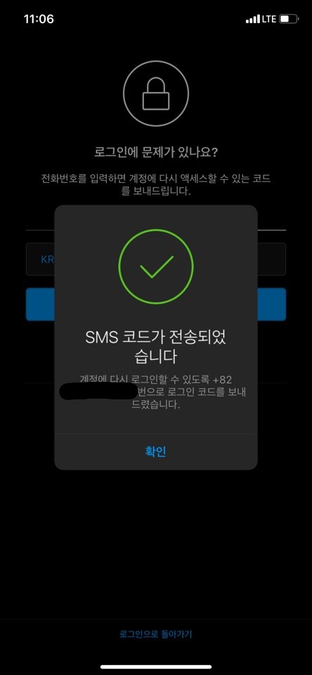 그러면 전화번호로 인스타그램에서 메세지를 줍니다. 코드가 있는데요.