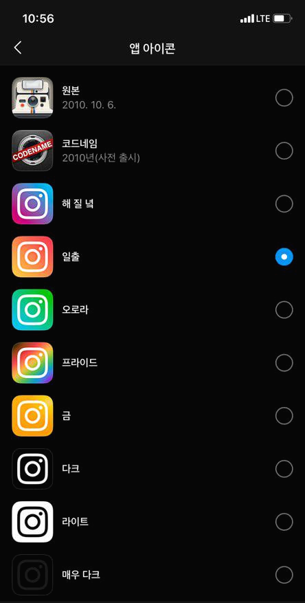 벌써 인스타그램이 10년이나 되었군요.. 인스타그램의 생일을 맞이해서 아이콘을 취향대로 바꿀 수 있는 기능을 추가하게 되었나봐요!!! 완전 예전에 쓰던 감성 아이콘이 있네요!