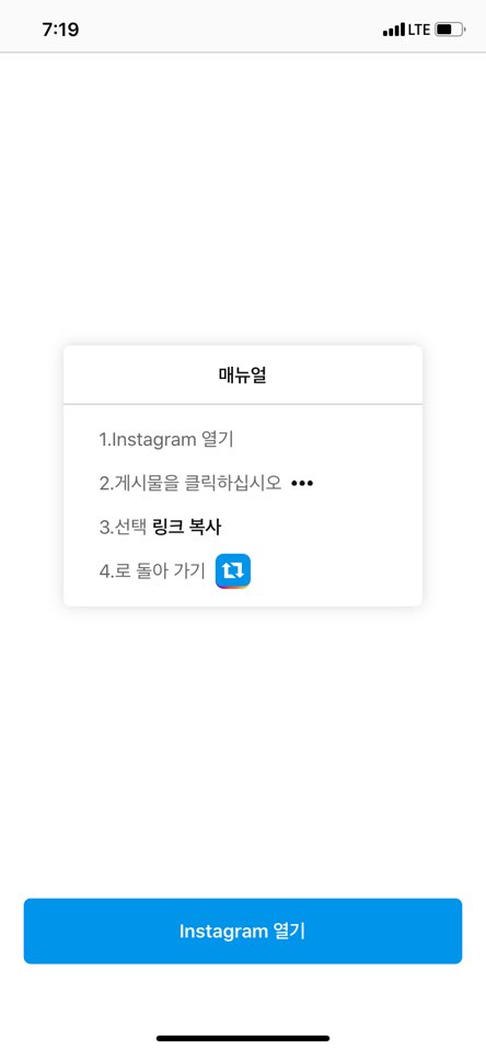 구글 스토어나 앱스토어에서 리그램 어플을 다운받은 뒤에, 인스타그램에서 리그램하고 싶은 포스팅의 링크를 복사합니다. 다시 리그램 어플로 돌아가서 사진과 글을 붙여넣기 해주면 끝납니다!