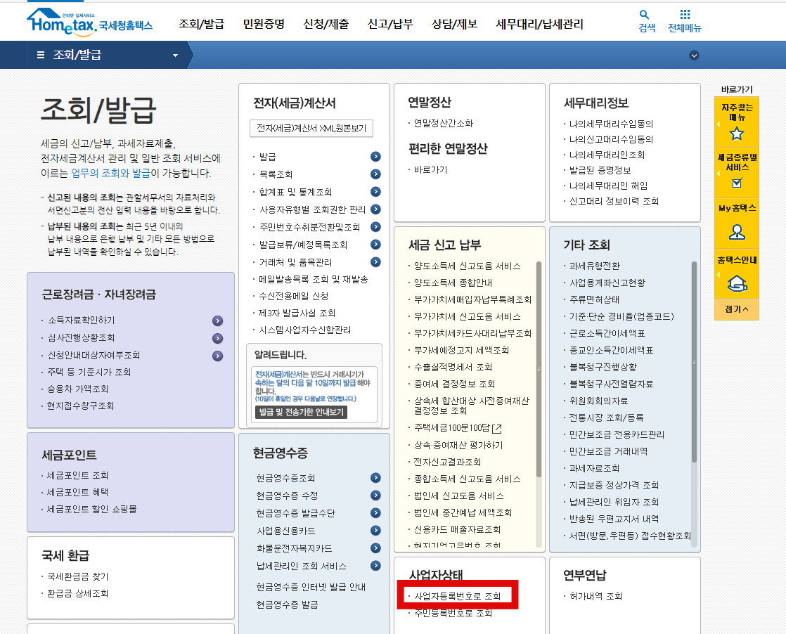 홈택스로 사업자등록 상태 조회 하기