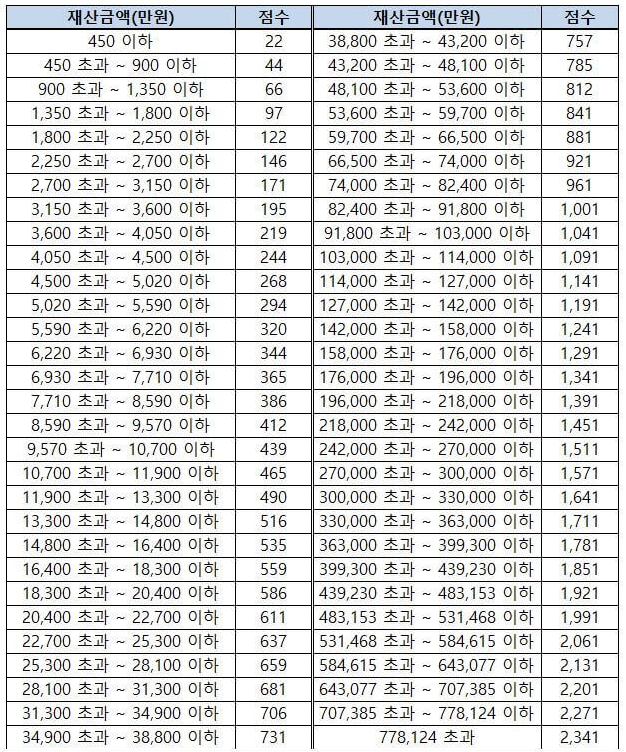 2) 재산 점수 계산 방법