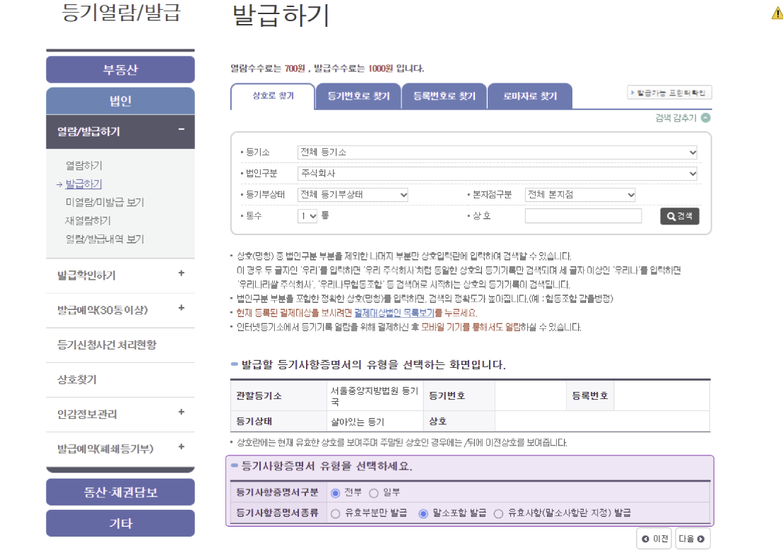 법인 등기부등본 출력 수수료는 1,000원, 등기부등본 열람 수수료는 700원입니다. 온라인 상으로 등기부등본 무료열람은 어려운 점 참고하시길 바랍니다.