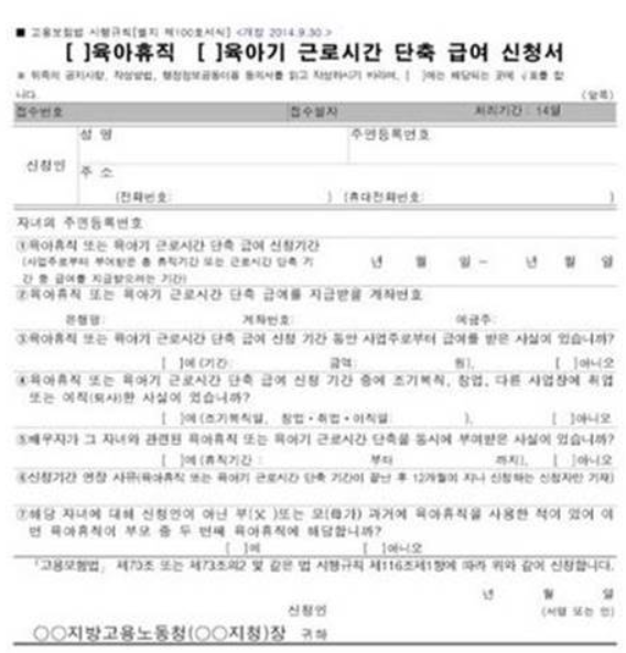 - 육아휴직 급여 신청서