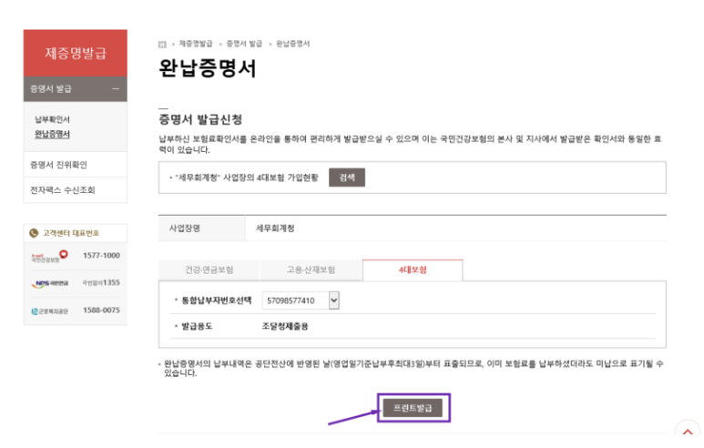 개인 4대보험 완납증명서 발급순서는 다음과 같습니다.