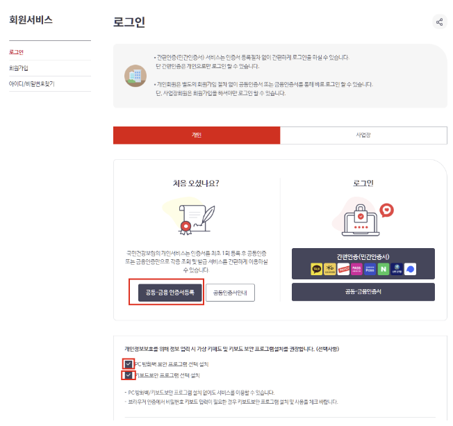 - 공동인증서 및 공인인증서 등록을 통한 국민건강보험 로그인하기