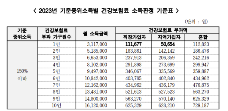 - 기준 중위 소득이 150% 이하인 경우