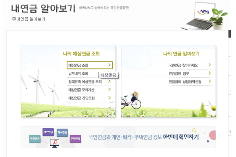 - 로그인이 완료되면 [NPS 내연금 국민연금 노후준비서비스] 사이트로 이동합니다.