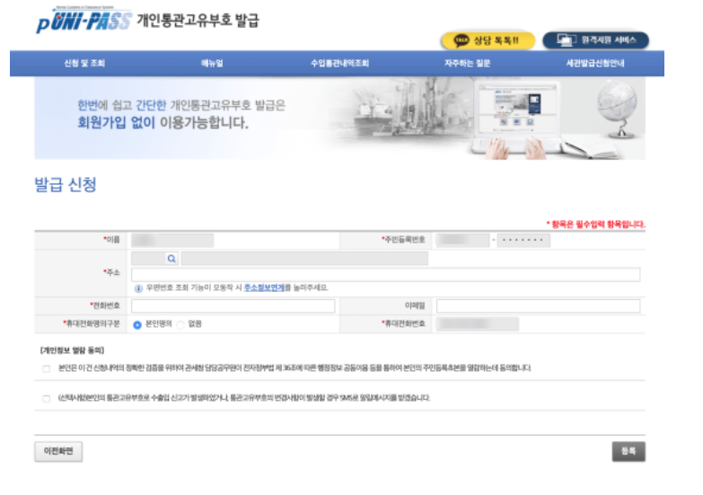 해외 사이트로부터 물품을 구매하는 경우에는 개인통관부호가 필수적으로 필요합니다.