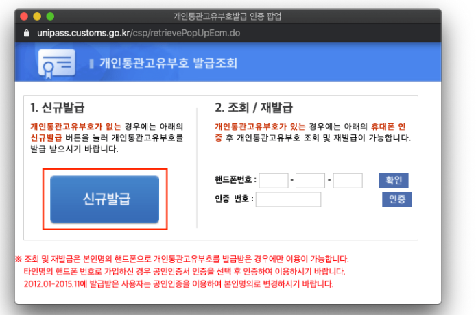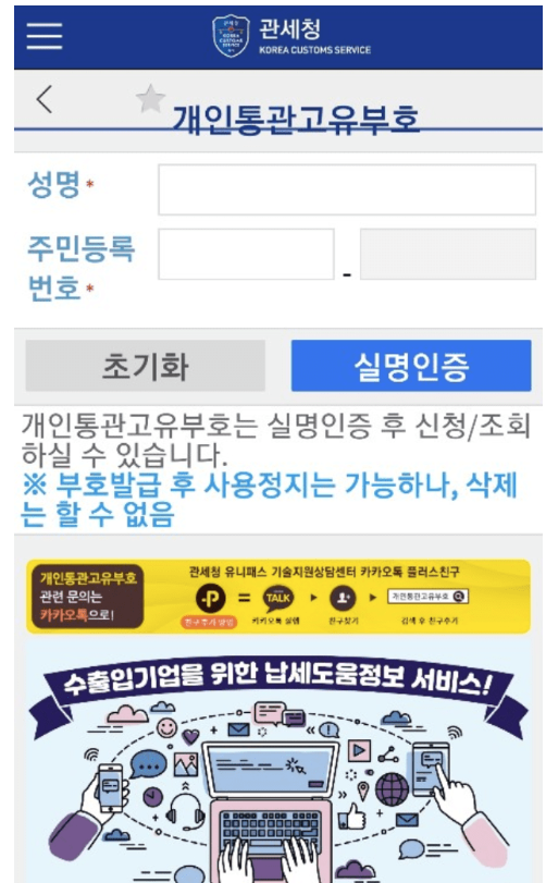 - 개인통관고유번호 모바일 발급 방법