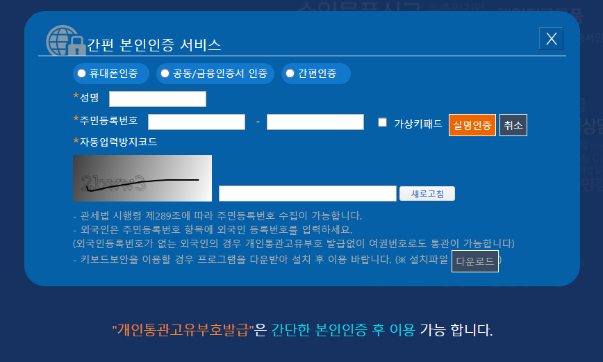 개인통관고유부호 발급방법