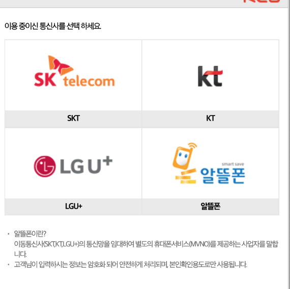 휴대폰 본인확인 팝업이 뜨면 본인의 휴대폰 통신사를 선택하신 후 개인정보를 입력하시고 [확인] 버튼을 클릭 하세요