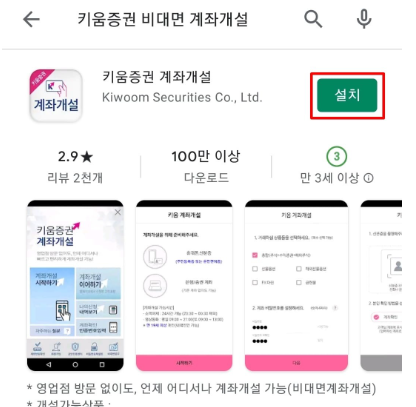 1. 키움증권 계좌개설 어플리케이션을 다운로드 및 실행합니다.