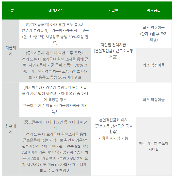 환수해지는 지급요건이 미충족 될 경우를 말합니다. 이경우는 근로소득 장려금을 제외한 청년 적립금 및 이자만 지급됩니다.