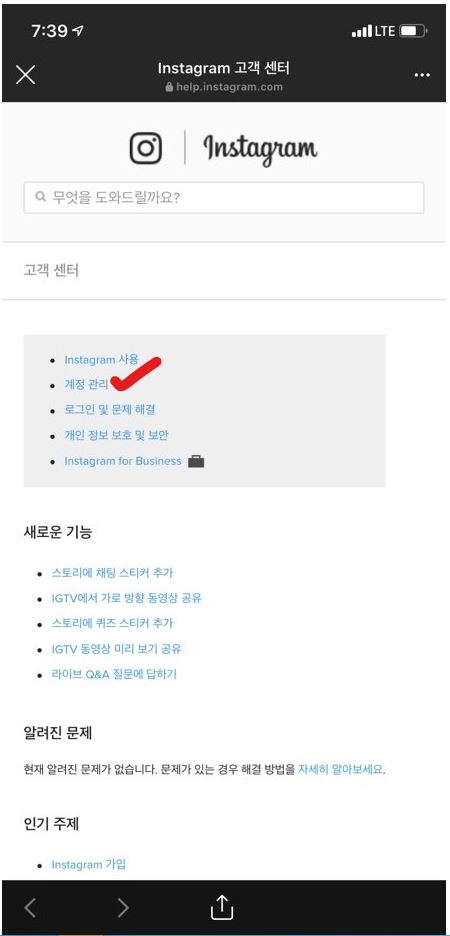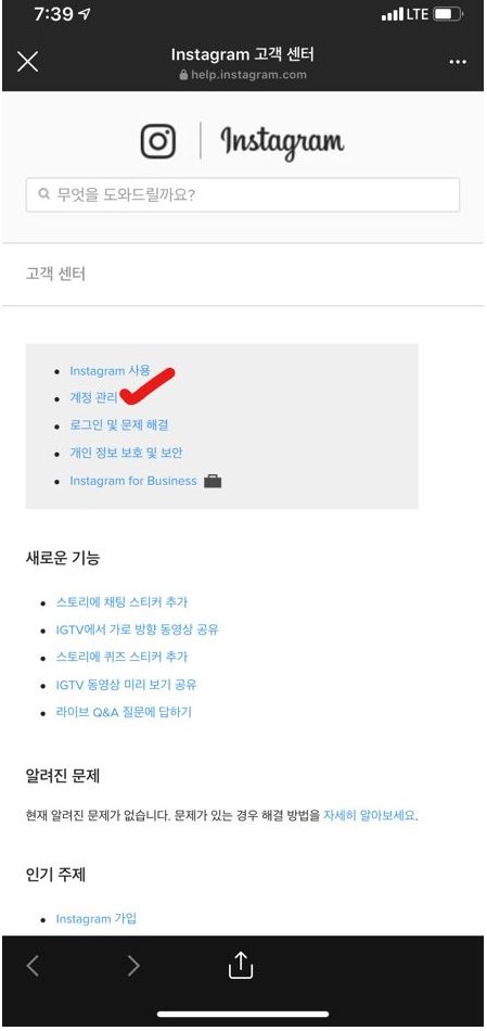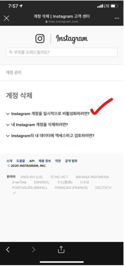 제 말이 맞죠? 맨 위에 있는 'Instagram 계정을 일시적으로 비활성화 하려면?'을 클릭해주세요~