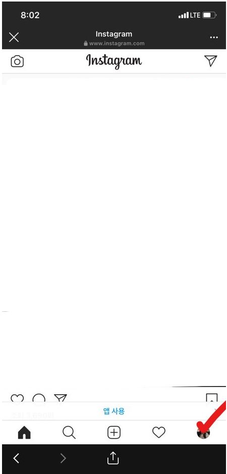 그러면 이렇게 자신의 인스타그램 아이디로 들어옵니다. 저는 로그인이 되어있어서 로그인 과정은 생략할게요! 맨 아래 프로필을 눌러줍니다.