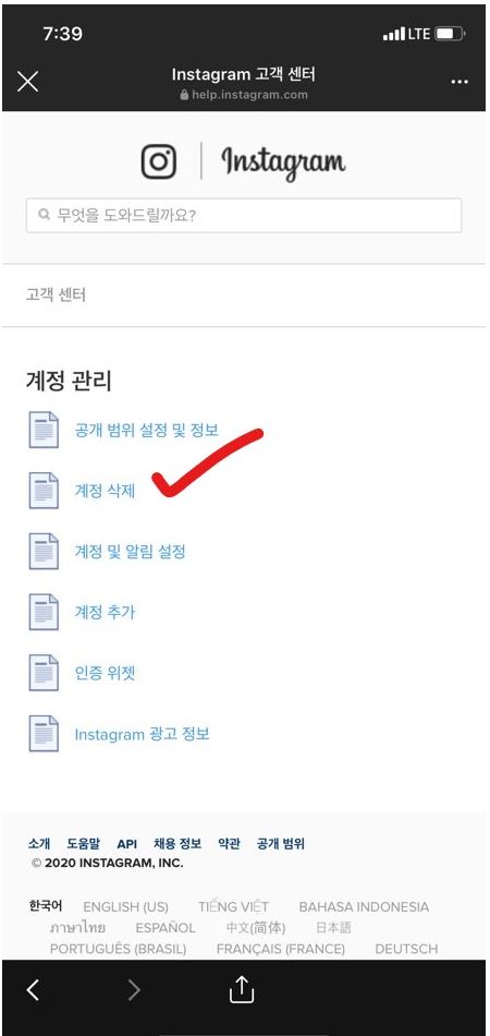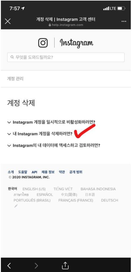 '내 Instagram 계정을 삭제하려면?' 을 클릭해주세요.