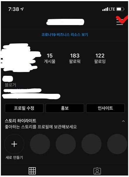 먼저 인스타그램 프로필 창으로 가주세요!