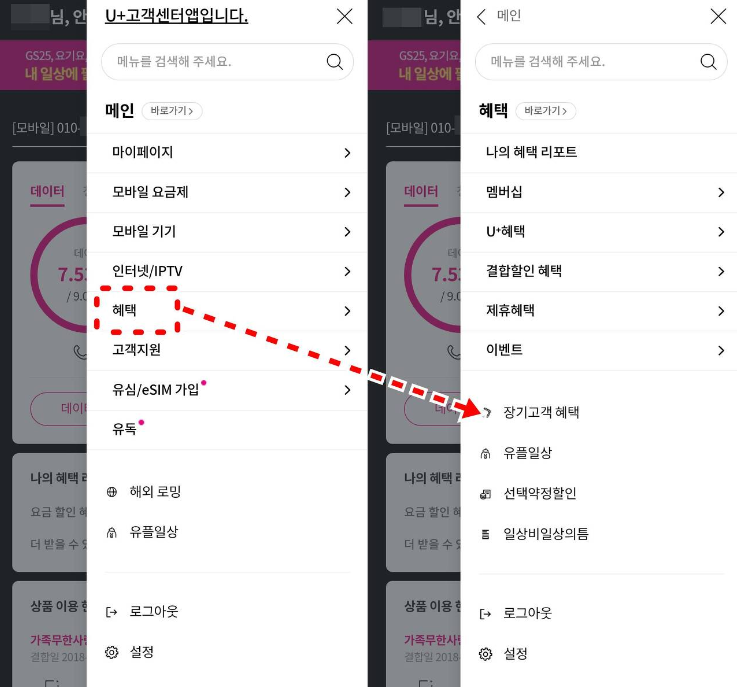 유플러스 선택약정 연장은 [당신의U+] 앱을 통해 하실 수 있습니다. 물론 다른 통신사 핸드폰 약정 연장도 마찬가지 입니다. 약정 연장 방법은 다음 순서를 참고하세요.