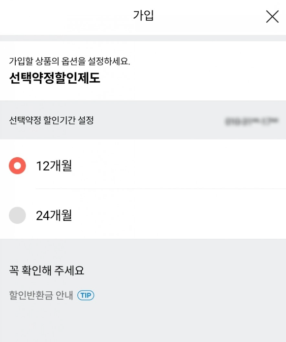 5. 본인의 상황에 맞게 12개월과 24개월 중 약정기간을 선택합니다.