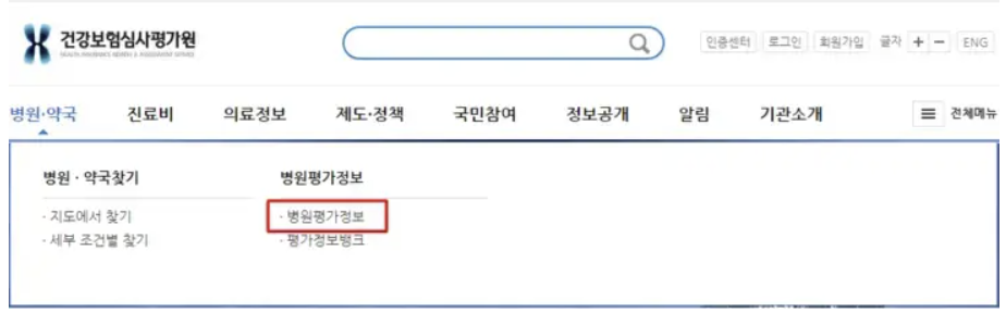 3. 병원 평가정보에 접속하시면 다음과 같은 화면이 나옵니다.