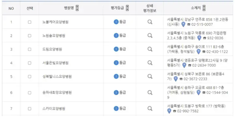 요양병원 등급 확인 방법
