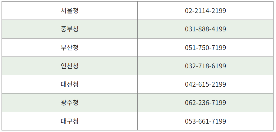 그 외에도 각 지역별로 콜센터가 존재하여 문의를 할 수 있습니다. 지역별 콜센터 전화번호는 아래 사진을 참고하시길 바랍니다.