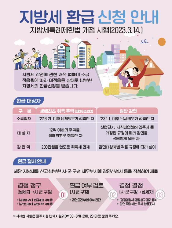 취득세 감면의 소급적용 대상자들은 지자체를 통해 취득세 환급신청을 해야합니다. 생애최초 취득세 환급 신청 절차에 대해 알아보겠습니다.
