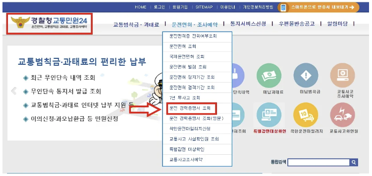 경찰청 교통민원 24 홈페이지에서 발급