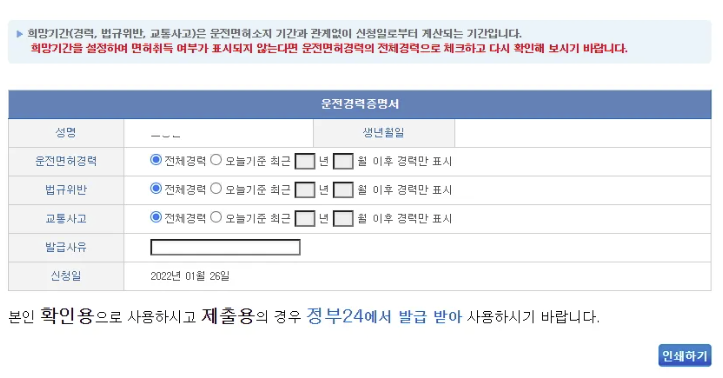 - 인터넷 정부24 발급 (운전경력증명서 인터넷발급)