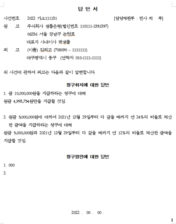 - 지급명령 답변서 예시