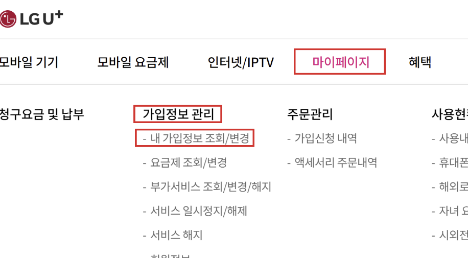 2. 마이페이지의 내 가입정보 조회변경 메뉴에서 휴대폰 지원금 정보를 확인할 수 있습니다.