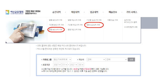 여신금융협회 카드매출 조회 방법