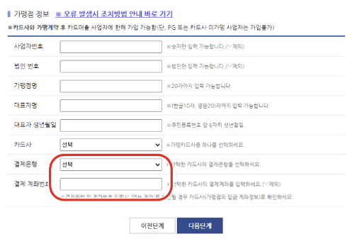 2. 홈페이지 우측 상단에서 여신금융협회 회원가입 및 여신금융협회 로그인을 진행합니다. 회원가입 시 아이디 및 개인정보를 입력하고 다음단계로 넘어가게 되면 다음과 같이 가맹점 정보를 입력한다는 점 유의하시길 바랍니다.