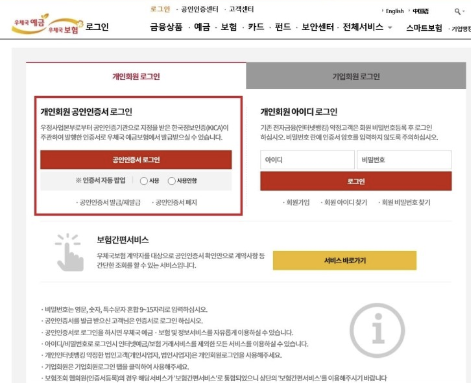 2. 공인인증서 로그인을 합니다. 보험증권 / 보험계약 조회는 공인인증서로 로그인 하는게 가장 빠르고 쉽고 간편하다는 점을 참고하시길 바랍니다.