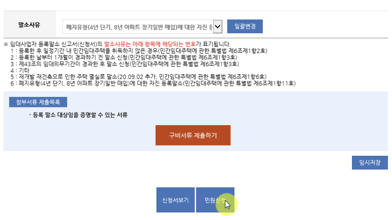 4) 임대사업자 중복 및 오류등록 또는 임대업자의 사망 시 자진 말소 신청이 가능합니다.