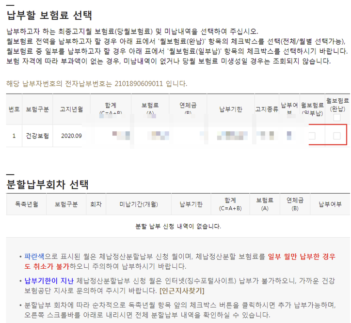4. 건강보험료 조회 후 미납조회가 됐다고 하면 화면에 납부할 금액을 선택하신 후 국민의료보험공단 상 납부 방법을 계좌이체, 신용카드, 인터넷 지로 선택 후 납부를 하실 수 있습니다.