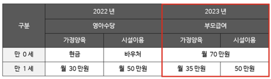 영아수당이 최소 30만원에서 최대 50만원을 지원했던 것에 비해 부모급여는 현재 최소 35만원에서 최대 70만원으로 지원되어 금액이 크다고 볼 수 있습니다.