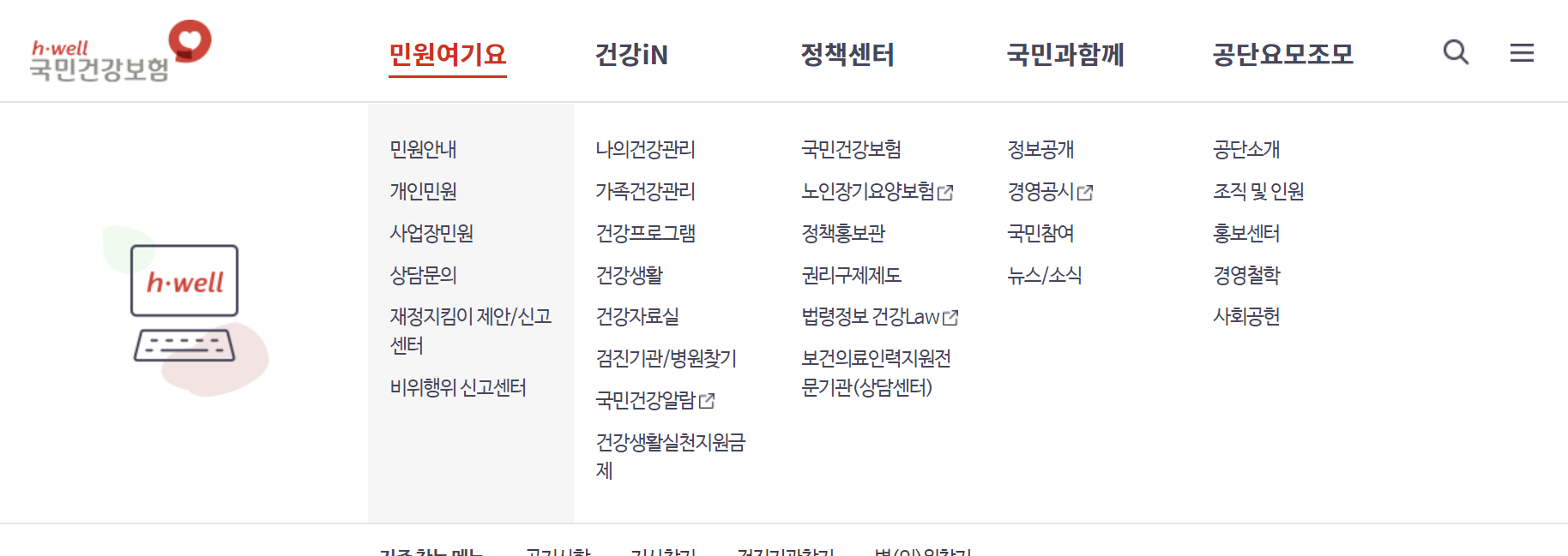 1. 국민건강보험공단 홈피에서 아이디 또는 공동인증서로 로그인합니다. 국민건강보험공단 사이트 접속은 하단 링크를 참고하세요.