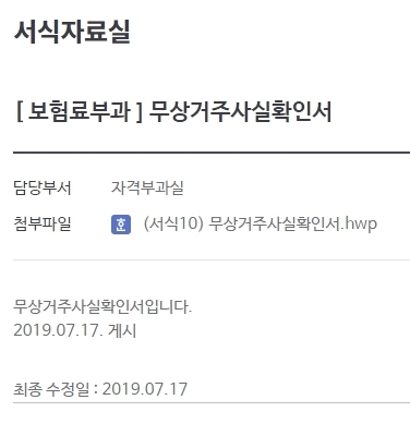 따라서 무상거주사실확인서란 해당 주소지에 무료로 살고 있는 건강보험 지역가입자가 국민건강보험공단 홈페이지에서 출력하여 공단에 제출하게 되면, 건강보험 지역보험료를 감액 받을 수 있게 해주는 서류입니다.