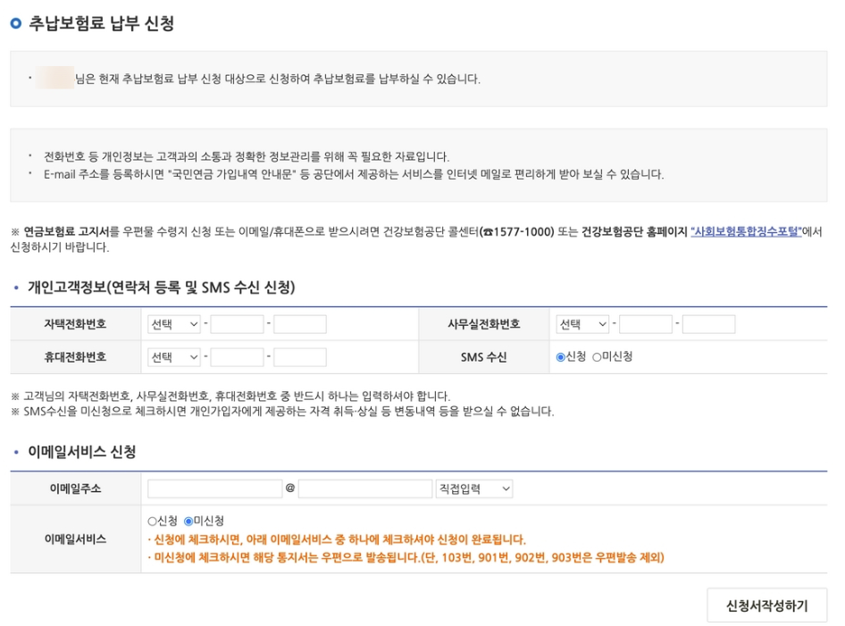 4. 추납 보험료 납부 신청서 작성 및 신청을 하면 됩니다.