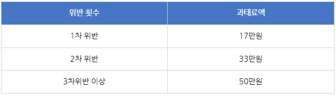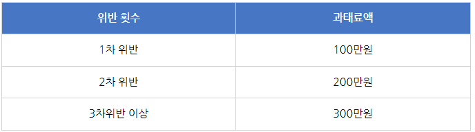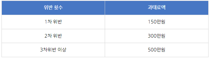 위반 횟수별 부과되는 과태료는 다음과 같습니다.