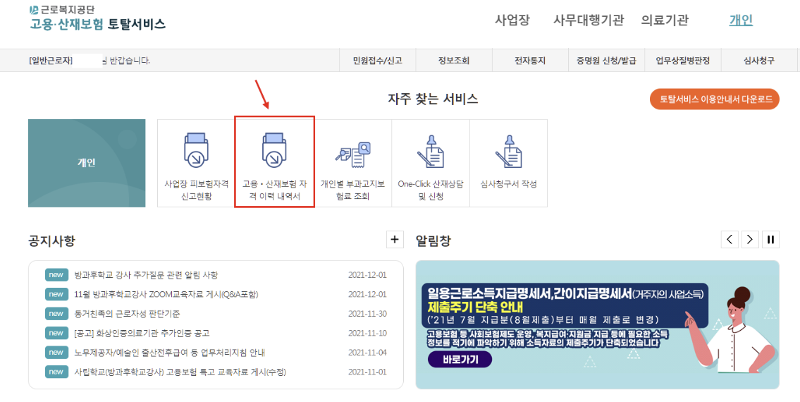 - 근로복지공단 고용보험 가입이력 조회 방법