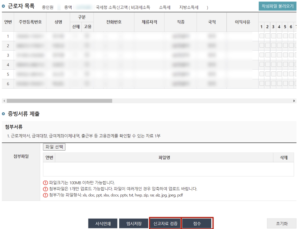 6. 스크롤을 내려보면 화면 아래쪽에 방금 입력한 내용이 추가되어 있는 것을 확인하신 후 [접수] 버튼을 눌러줍니다.