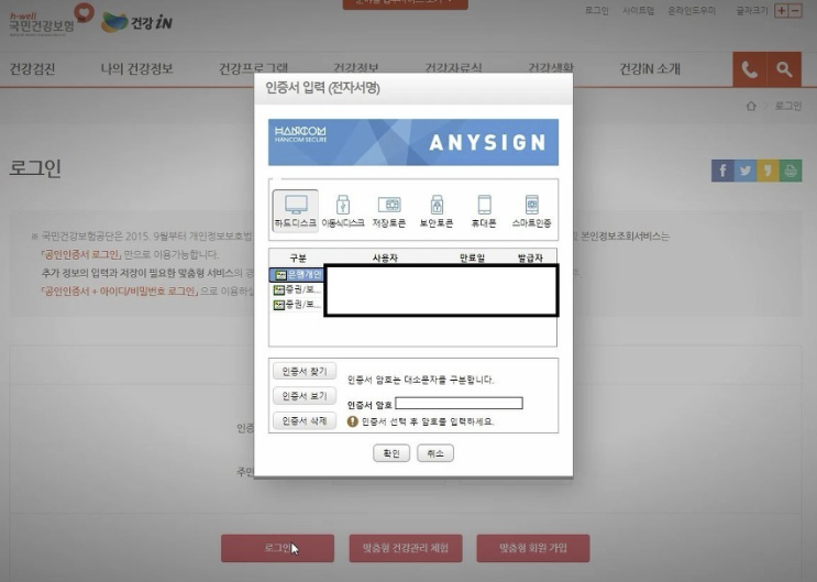 2. 공인인증서 로그인을 합니다.