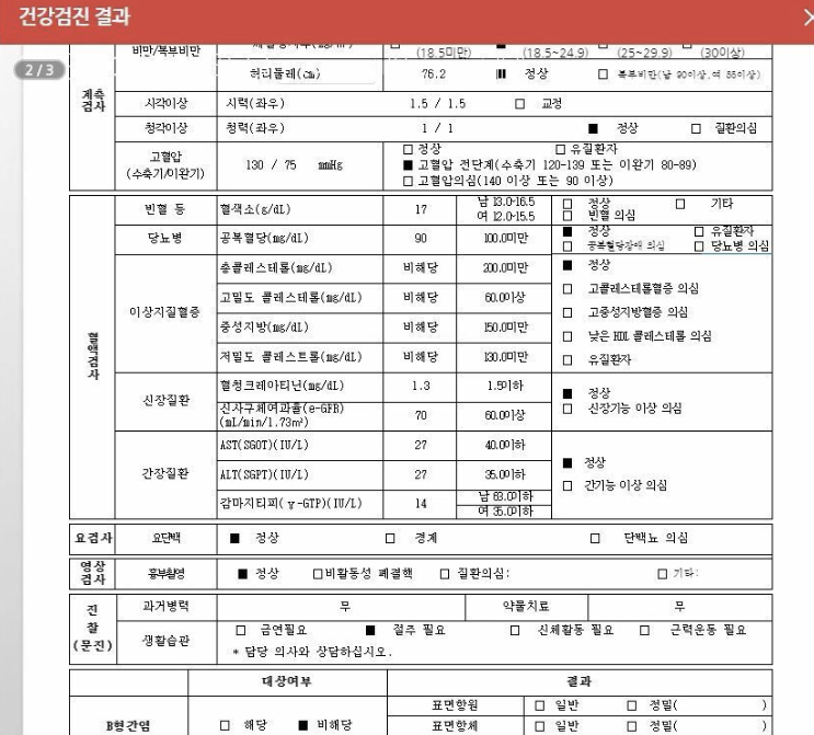 세부 건강검진 결과를 통해 건강검진 결과지 보는 법에 대해 알아보겠습니다.