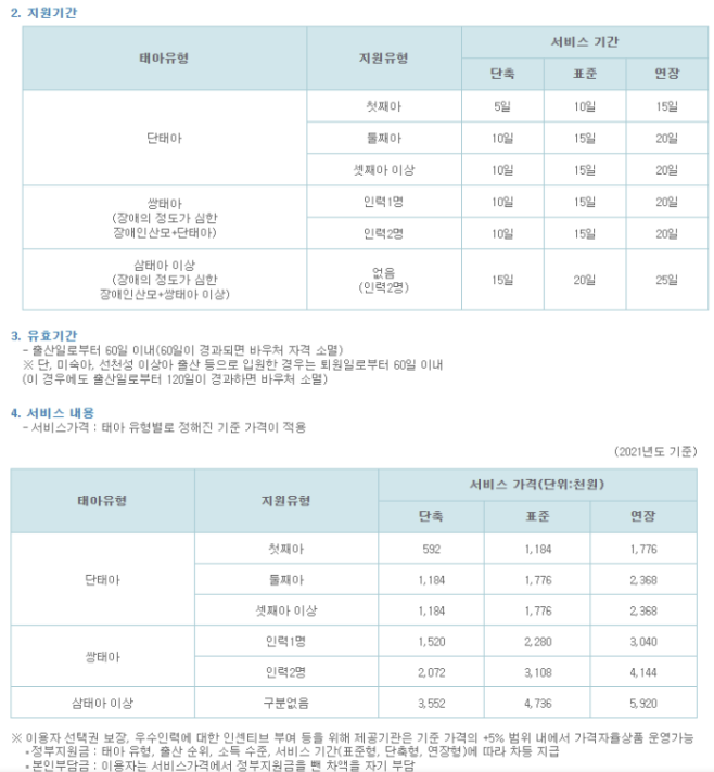 - 산후도우미 정부지원 기간