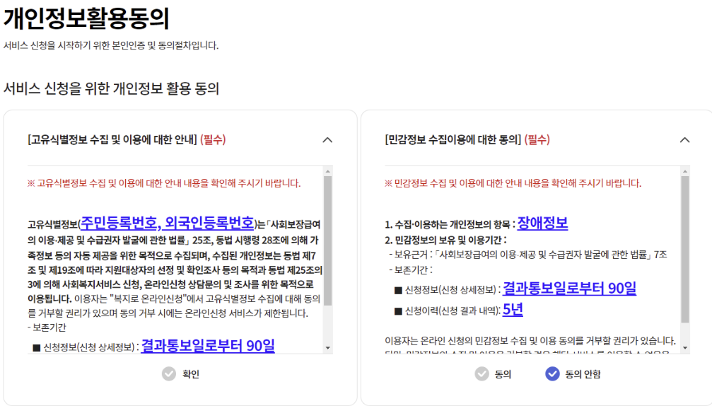 4. 개인정보활용동의 절차를 진행합니다.