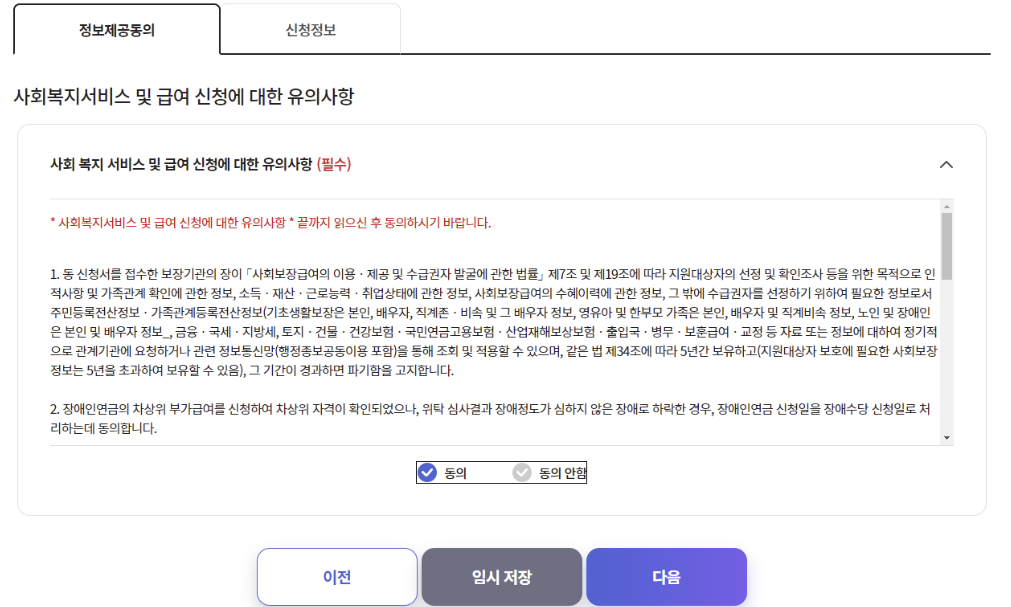 7. 정보제공 동의화면에서 '동의'에 체크하고 다음 단계로 넘어갑니다.