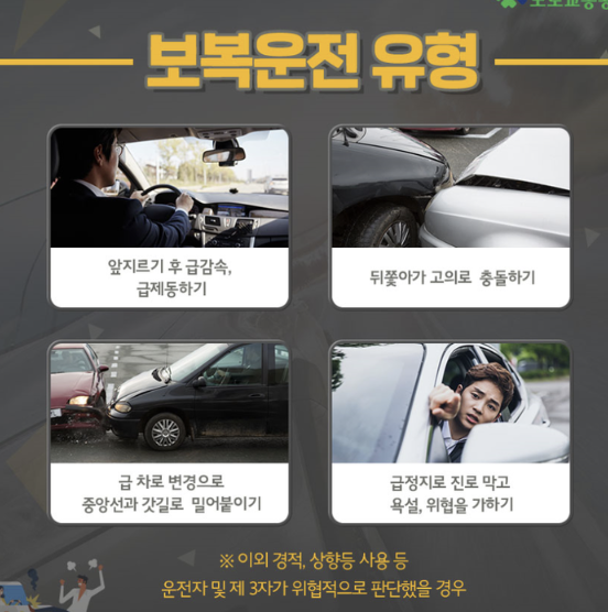 이외 지그재그 운전, 경적 및 상향등 사용 등 운전자 및 제3자가 위협적으로 판단했을 경우도 포함이 됩니다.